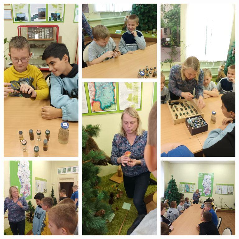 Руководитель экомузея Алла Юрьевна поведала ребятам увлекательный рассказ о природе Собинского района, провела беседу о съедобных и ядовитых грибах, лесных животных и лесных птицах, ознакомила с богатой коллекцией насекомых и коллекцией ископаемой фауны юрского и каменноугольного периода.