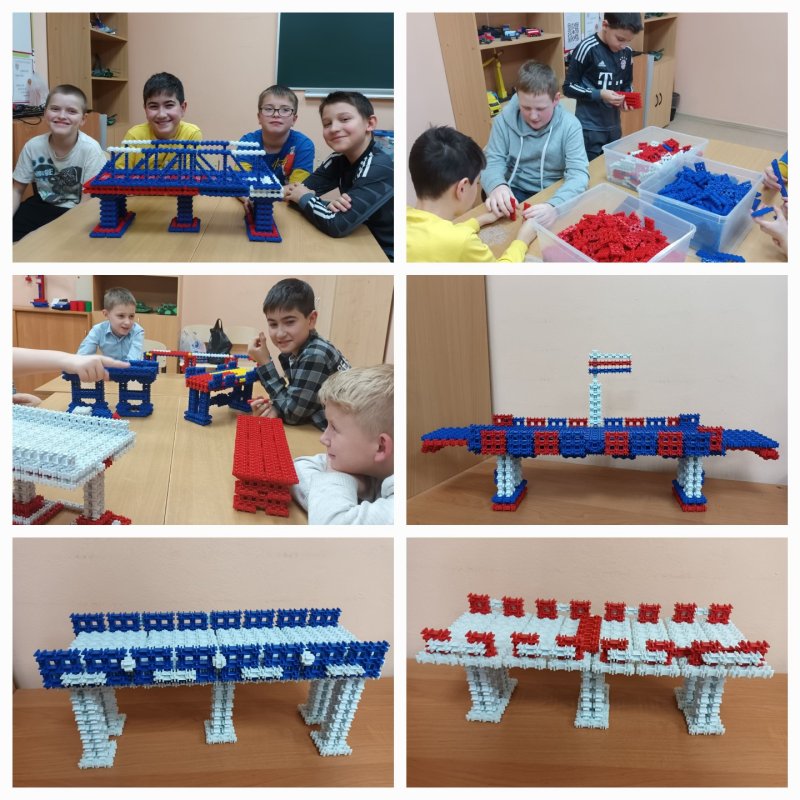 Моделирование из конструктора даёт ребятам возможность воплотить все свои творческие идеи. Несколько занятий подряд группа 2 года обучения занимались конструированием мостов. Сначала обучающиеся изучали принципы создания прочной конструкции, виды опор и придание им прочности. С интересом узнали, что такое ферма моста, её назначение. Мальчики моделировали на занятии опоры, фермы, пролёты, испытывали их на прочность, обсуждали результаты, оценивали.