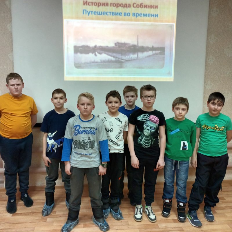Мальчики узнали, почему место, на котором стоит город назывался Собинова пустошь. Родился город в 1858 году, когда была построена прядильно-ткацкая фабрика. Развивалась фабрика и развивался город, были построены казармы, дома, магазины, школа, церковь. Так же был построен первый деревянный мост через Клязьму, по которому перевозил груз гужевой транспорт. Мальчики узнали такой факт: дорогу между Собинкой и Ундолом "проложила" корова.