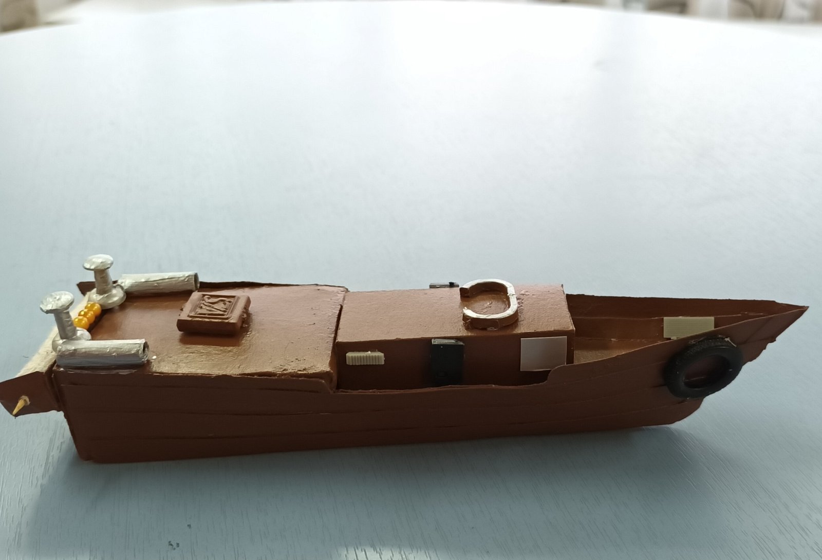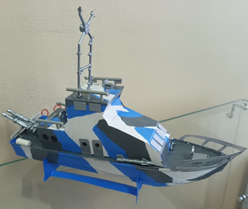Свой проект современного противодиверсионного катера сконструировал и выставил на выставке Кирилл Калугин. Модель катера оснащена навигационным радаром, средствами радиационный борьбы и приманки.