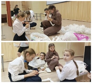 Первая встреча с ребятами из объединения "Петрушка" Театрально-фольклорной студии "Ярило". Они выступают сегодня не в роли артистов, а в роли швей, закройщиков, дизайнеров, а ещё, что особенно важно, девочкам весь этот опыт пригодится в дальнейшей жизни.