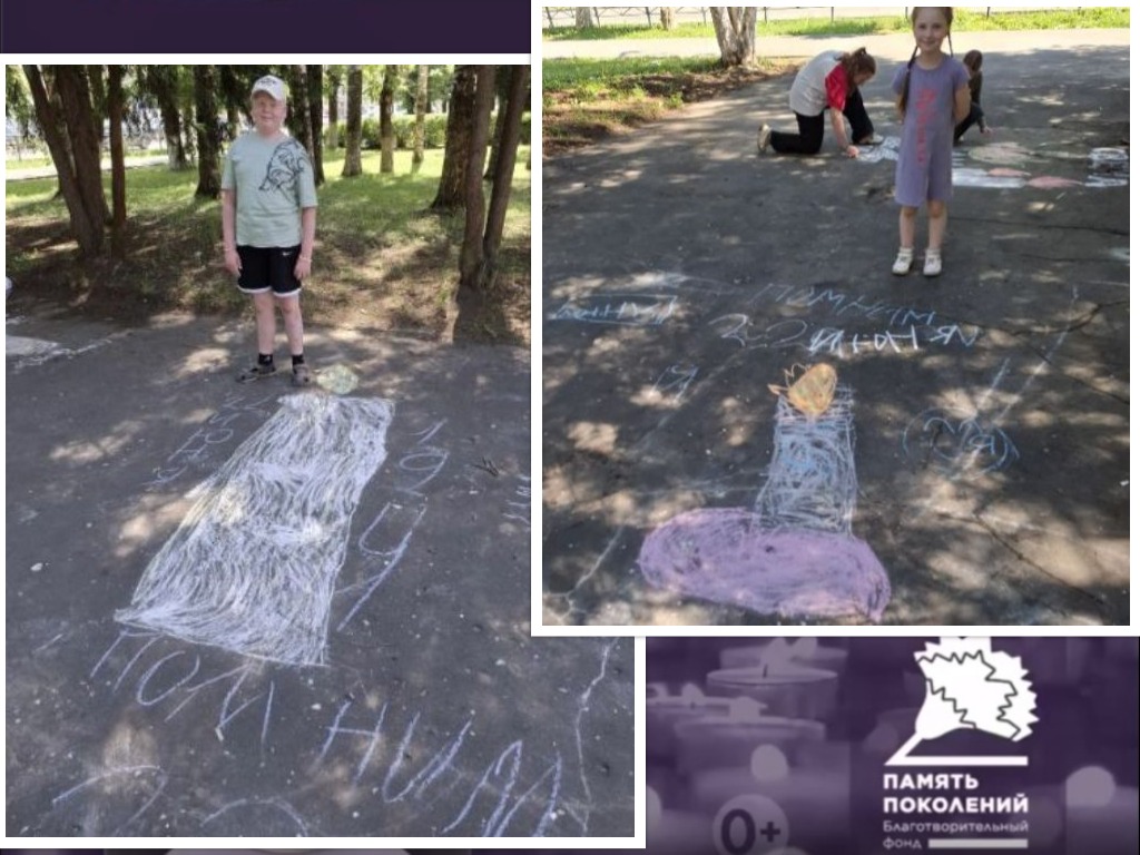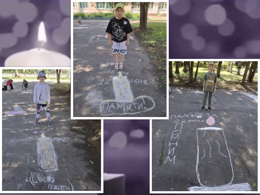 Ребята из объединения "Весёлая палитра" присоединились к всероссийской акции #СвечаПамяти, приуроченной к трагической дате начала Великой Отечественной войны – 22 июня 1941 года. В рамках акции ребята нарисовали яркие свечи мелками на асфальте, символизируя уважение и благодарность героям, сражавшимся за свободу нашей Родины. Эта традиция стала важной частью воспитания подрастающего поколения.