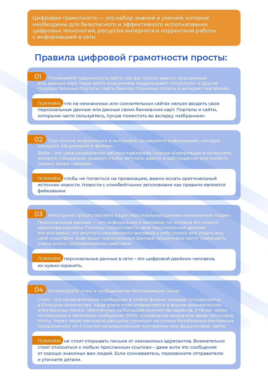 Цифровая грамотность — это набор знаний и умений, которые необходимы для безопасного и эффективного использования цифровых технологий, ресурсов интернета и корректной работы с информацией в сети.
