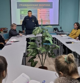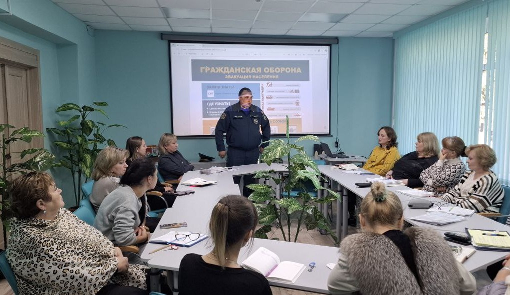 01.10.2025 года в ЦДО для сотрудников проведено тренировочное занятие по ГО «ВНИМАНИЕ ВСЕМ!». В рамках учебной встречи с начальником 32 пожарно-спасательной части 1 ПСО ФПС ГПС Главного управления МЧС России по Владимирской области Черноволиком Алексеем Николаевичем была доведена информация о ракетной, авиационной и беспилотной