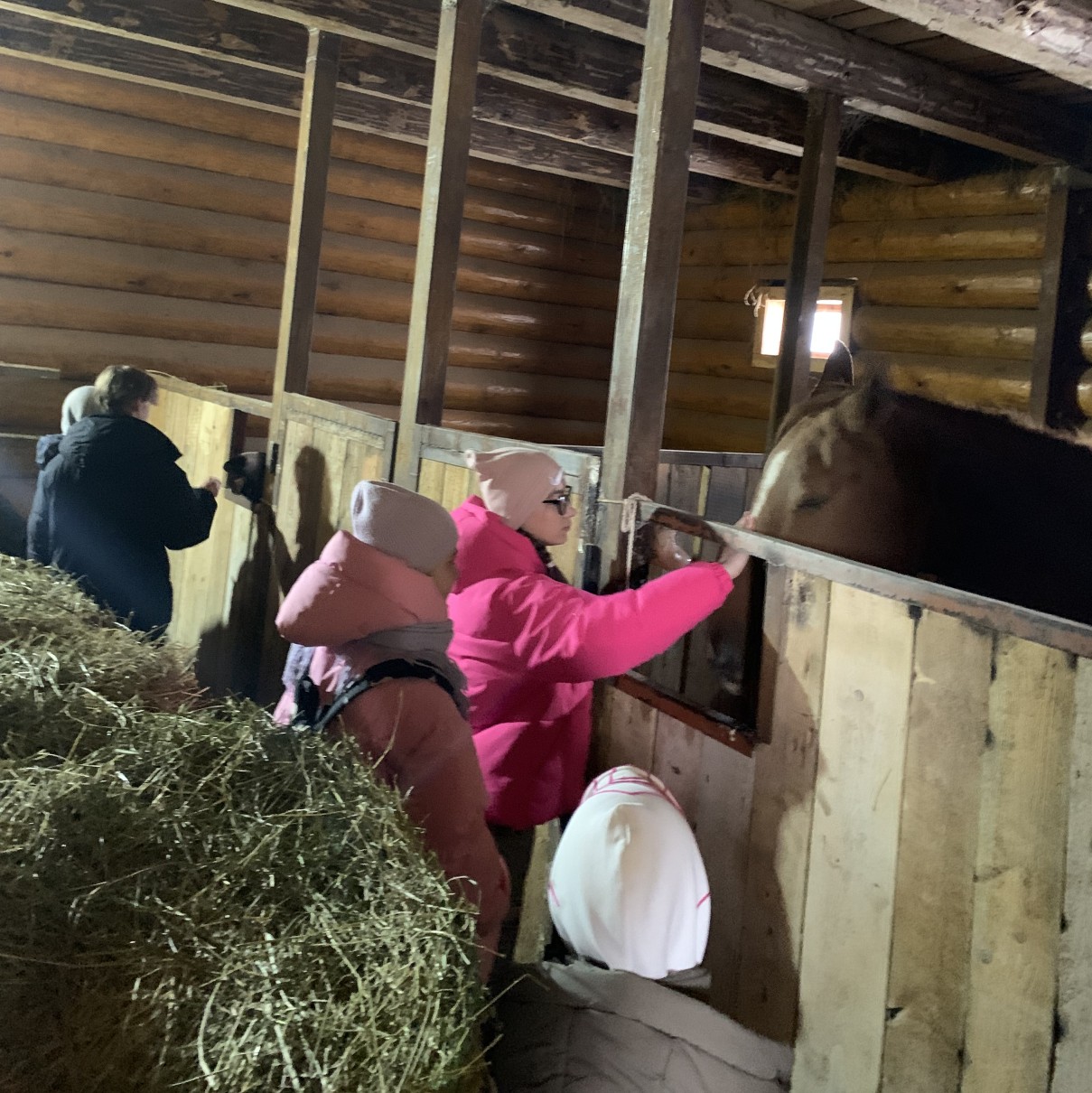 Особенное удовольствие доставило общение с животными. Дети с удовольствием кормили лошадей, ослика и гладили кроликов.