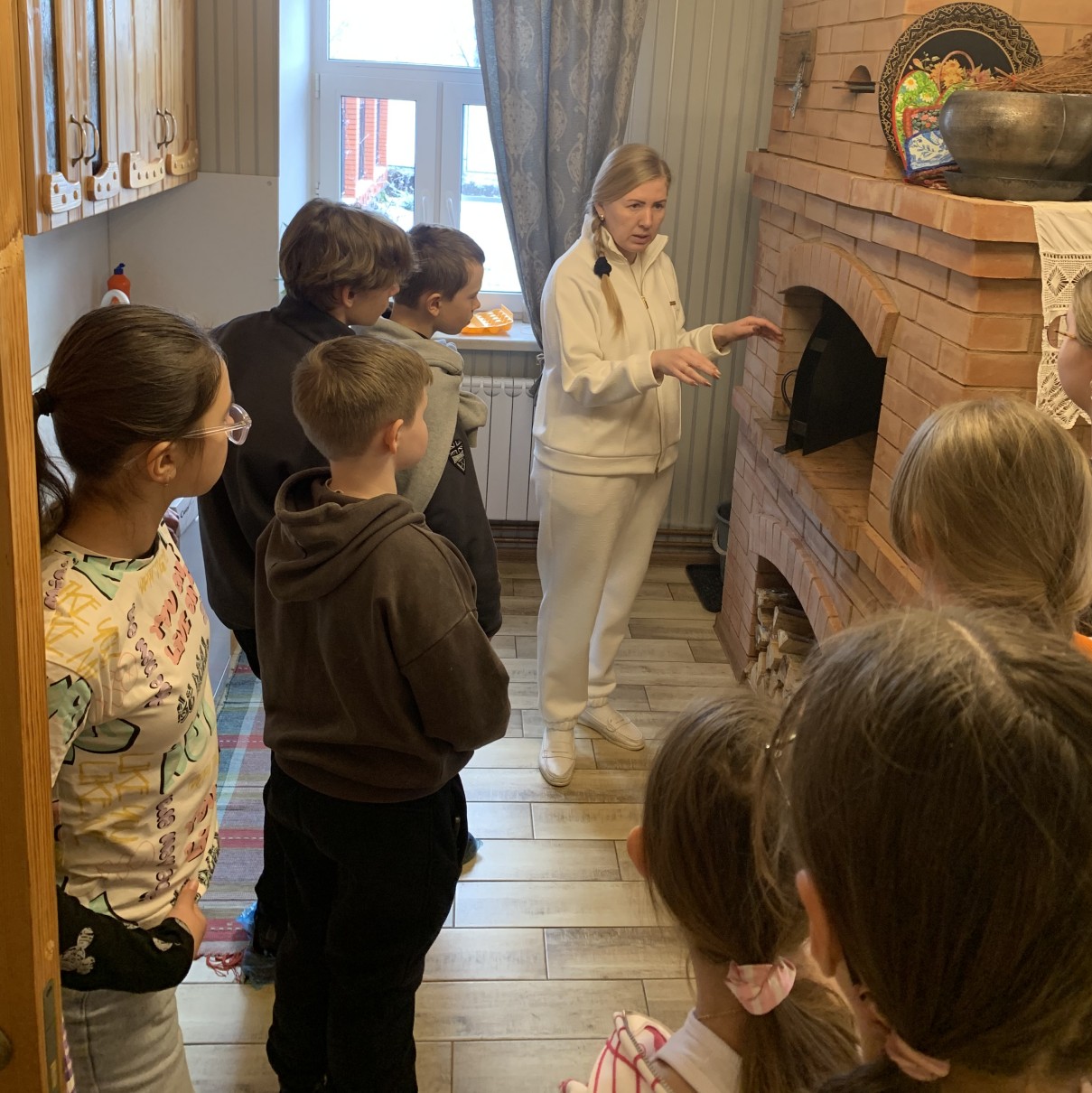 Одним из ярких моментов экскурсии был рассказ о традиционной русской печи. Ребята даже имели возможность поставить в нее настоящие чугунки.