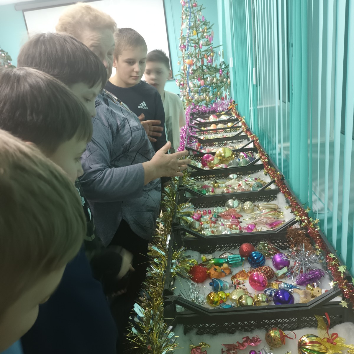 Педагог нашего центра Вера Борисовна Соколова, опытный наставник и энтузиаст своего дела, провела экскурсию по выставке, раскрыв перед детьми удивительную историю елочной игрушки. Ребята узнали, как эволюционировали новогодние украшения из простых картонных фигурок и стеклянных шариков в произведения искусства ручной работы разных эпох и стилей.