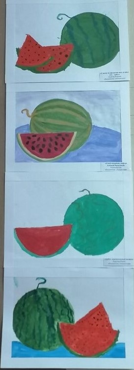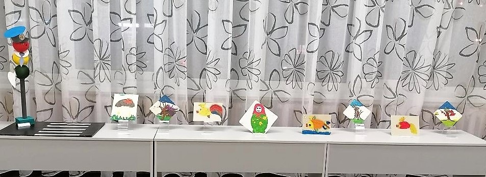 Привлекают посетителей и натюрморты, такие как: «Сладкий арбуз» «Букет цветов в вазе». В выставки принимали участие дети, которые занимаются по индивидуальной программе. Их работы радуют глаз: «Мой друг светофор» «Дерево счастья», «Новогодняя красавица», открытки для мамы и папы.