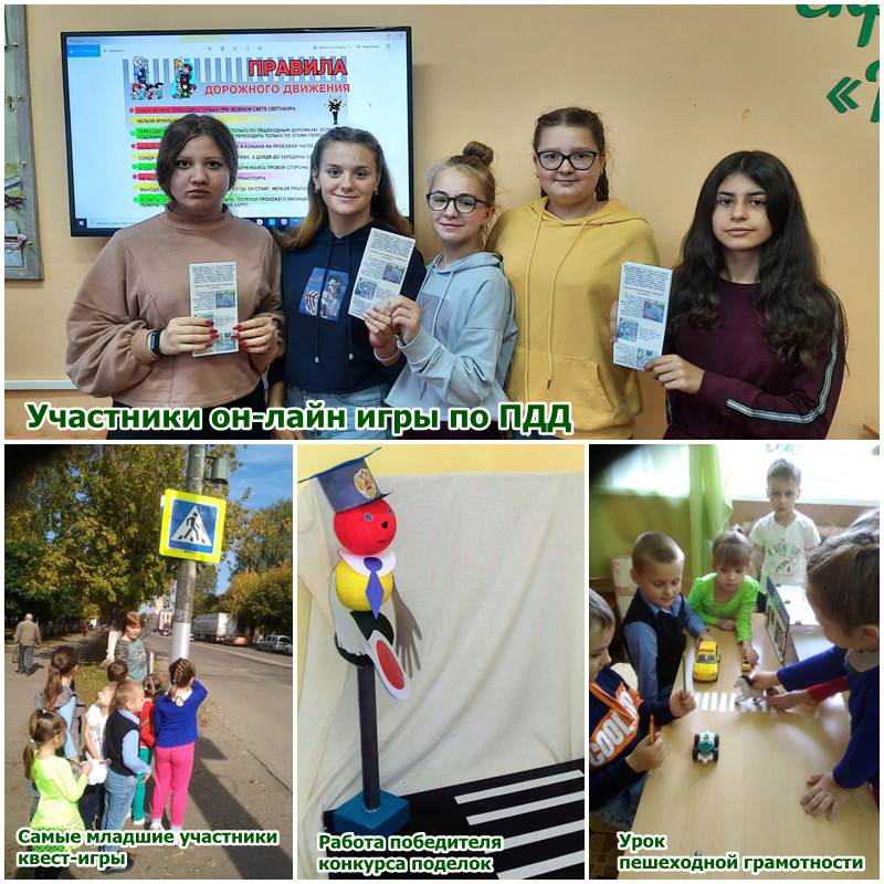 В ЦДО были проведены различные по форме мероприятия, направленные на предупреждение дорожного травматизма. Ребята младшего возраста участвовали в играх и викторинах на знание правил дорожного движения, сигналов светофора, правил поведения в общественном транспорте и на дороге, приняли участие в конкурсе рисунков и поделок на тему: «Улица полна неожиданностей!».