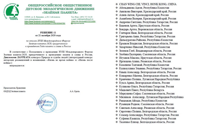Поздравляем Зеленова Глеба ( Объединение "Основы журналистики")- Лауреата Международного литературного конкурса "Зеленая планета" в номинации "Жизнь леса и судьбы людей". Так держать!