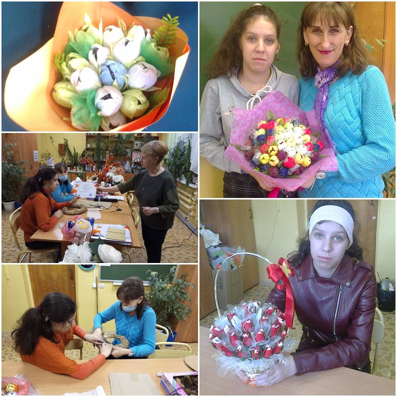 В объединении «Флористика» первый год занимается Анжелика. Успешно осваивает индивидуальную программу «Вместе с природой». В течении двух месяцев Анжелика вместе с мамой Еленой Васильевной с удовольствием занимаются, создают оригинальные творческие работы в технике свит дизайн. Свою первую работу - цветочная композиция из бутонов роз Анжелика подарила своему любимому классному руководителю и педагогу, участвовала во Всероссийском конкурсе"Бумажная фантазия" - "Подарок педагогу", награждена дипломом 1 место. Диплом вручила Анжелике заместитель директора по УМР Светлана Владимировна Онаприюк, которая присутствовала у нас на занятии, и пожелала новых творческих достижений. Сейчас мама вместе с дочерью практически закончили работу ко дню матери, которую назвали «Дорогой и любимой», работа участвует во Всероссийском конкурсе "Мама, я тебя люблю". Хотелось бы сказать огромное спасибо маме Анжелики — Елене Васильевне, которая принимает активное участие в творческой деятельности дочери. Желаем творческого вдохновения, здоровья и новых творческих побед !!!