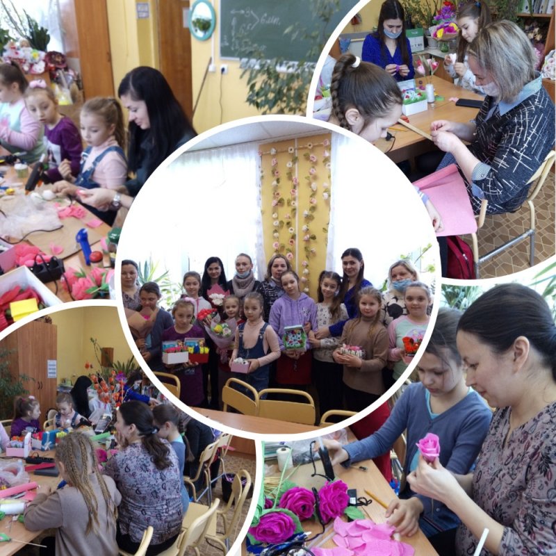 В преддверии международного женского праздника 8 Марта в объединении "Флористика" воспитанницы создают весенние композиции и букеты и дарят их мамам, бабушкам, педагогам. 7 марта в группе №1, 1 года обучения прошло родительское собрание плавно переходящее в мастер-класс по свитфлористике . Мамы вместе со своими дочками создавали весенние композиции.Чудеснейшие участницы, прекрасные работы, море позитива и только бесконечно радостные эмоции наполняли наше объединение в этот день! Спасибо вам, наши талантливые и самые лучшие участницы! Ждем вас снова! Будем рады новым участникам!