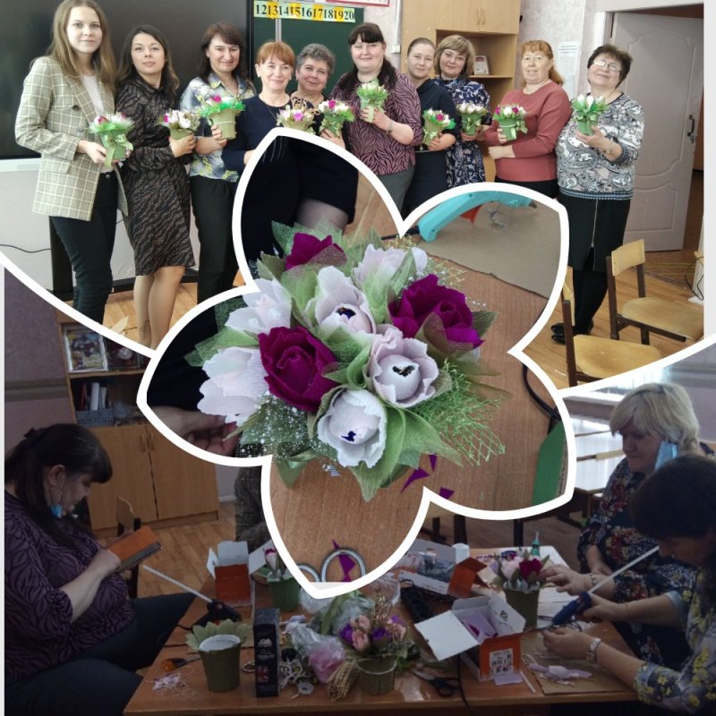 Мастер-класс - это современный и наиболее эффективный способ обмена и распространения педагогического опыта. 4 марта я представила мастер-класс на районном уровне для учителей начальных классов по свитфлористике на тему "Весенняя композиция из тюльпанов к 8 Марта". На мастер-классе учителя познакомились с техникой свит дизайна, научились создавать весеннюю композицию из тюльпанов с конфетами. Благодаря мастер-классу учителя могут в дальнейшем применять полученные навыки, методы и приемы в своей педагогической деятельности на уроках технологии.Творческая и доброжелательная атмосфера, море позитива, совместная фотосессия. Ведь учитель не мыслим без творчества!!!