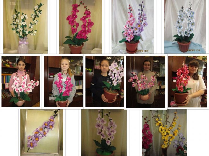 За окном апрель. До окончания учебного года осталось совсем немного времени. А учащиеся группы № 1 объединения «Цветочная мозаика» завершили работу по теме программы «Калейдоскоп ремёсел» - декоративные ветки. Тема большая, трудная. В начале изучения, как обычно, дети познакомились с презентацией «Технология изготовления декоративных веток», подробно разобрали алгоритм изготовления, посмотрели виды веток изготавливаемых учащимися прежних лет. Каждая учащаяся разработала эскиз своего изделия. Составили индивидуальный план работы и приступили к выполнению. Ветки разные. Анна К. выбрала цветы жасмина, Дарья О. остановила свой выбор на фантазийных цветах, которые разработала сама и выполнила в разном цветовом решении. Остальные девочки решили сделать ветки орхидеи, но разнообразной формы цветов, разной окраски и разного оформления. Все изделия получились необыкновенно яркими, красивыми. На итоговом занятии по теме каждая учащаяся защитила своё изделие. Девочки рассказали, с какими трудностями встретились и как их преодолели. Но расслабляться нельзя. Ведь следующее изделие самое необыкновенное – это брошь из ткани. Надеемся, что дети порадуют своих мам эксклюзивными брошками. Всем успеха.
