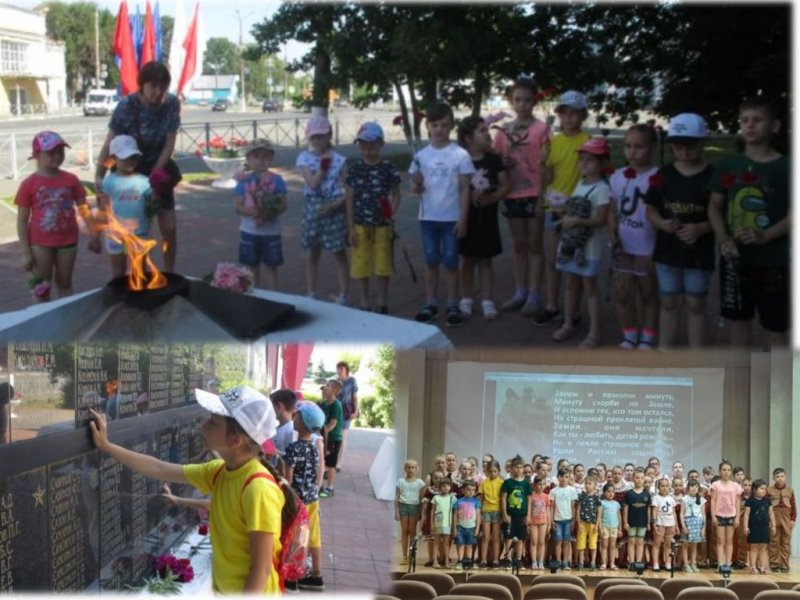 Участники оздоровительных летних профильных отрядов Центра дополнительного образования 22 июня провели акцию «Память». Утром они возложили цветы к Вечному огню у монумента памяти погибших в годы Великой Отечественной войны собинцев, а в 12.15 включились в общероссийскую минуту молчания в память о страшных событиях 80-летней давности и 27 миллионах советских граждан, ставших жертвами Великой Отечественной войны.