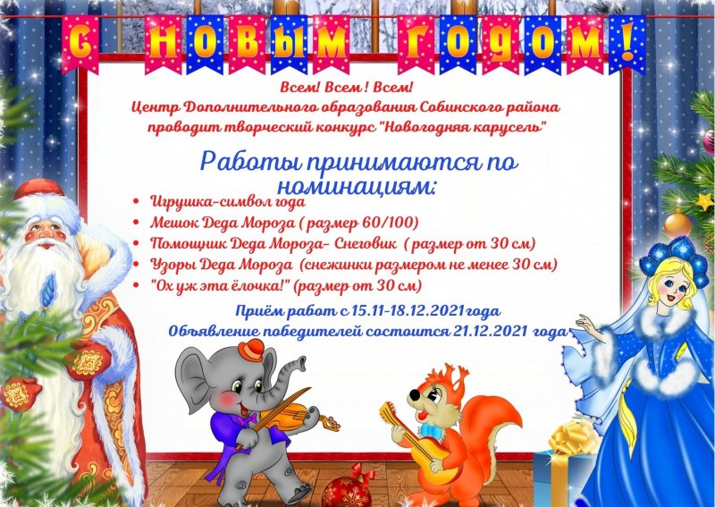 Наш Центр проводит творческий конкурс "Новогодняя карусель" в преддверии самого волшебного праздника Новый год. Приглашаем принять участие не только учащихся нашего центра, а так же родителей и педагогов.