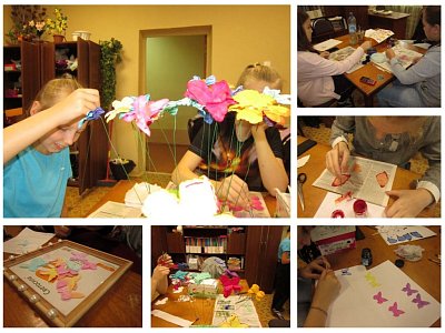 Одна из больших тем дополнительной общеобразовательной общеразвивающей программы «Калейдоскоп ремёсел», это изготовление бабочек из ткани, и украшение ими разнообразных поделок. В накопительной базе объединения имеется достаточный дидактический материал по теме: выкройки бабочек, фото видов живых бабочек с описанием, виды окраски, фото поделок учащихся прошлых лет. Итоговое занятие по теме «Технология изготовления бабочек из ткани» в группе 1 прошло 27ноября 2021года. Учащиеся показали и оценили свои работы, разработали алгоритм изготовления и оценочную таблицу качества изделия. Надо сказать, что и алгоритм, и оценочную таблицу дети делали сообща, обсуждая все этапы работы. Особенно им понравилась операция окрашивания крыльев бабочек. Изобретались новые виды окрашивания: окрашивание «Батиком», акриловыми красителями, комбинирование применения красителей. Процесс работы и готовые изделия вы можете увидеть на фото