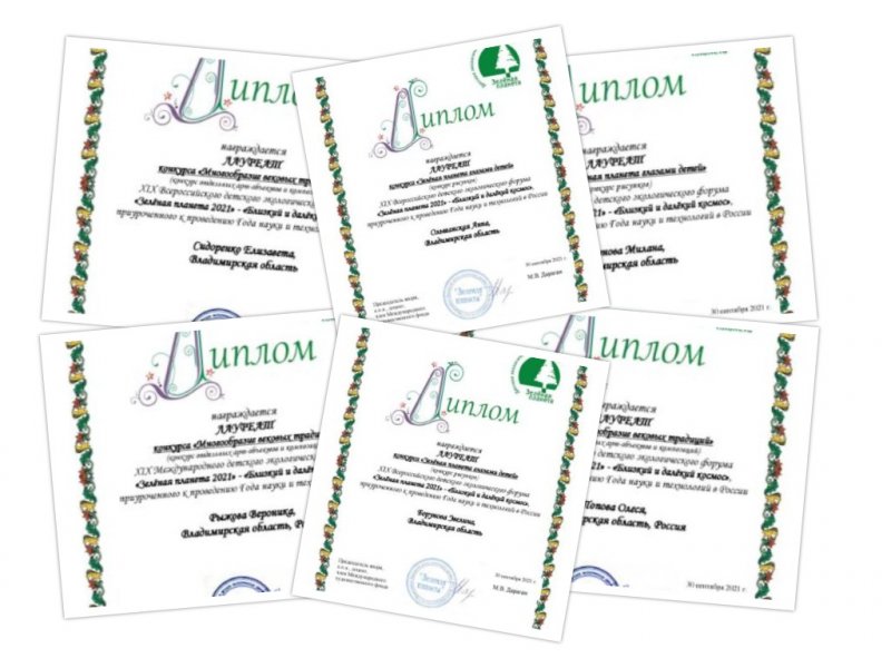 Сразу шесть воспитанников Центра дополнительного образования стали лауреатами Всероссийского и Международного этапов экологического форума «Зеленая планета». Это Рыжова Вероника (студия скрапбукинга «Пастила» - педагог Воробьева И.А.) - лауреат 1 степени международного конкурса в номинации «Арт-объект»; Попова Олеся (объединение «Бисероплетение» - педагог Трусова Н.А.) - лауреат 1 степени международного конкурса в номинации «Арт-объект»; Боруновы Милана и Эвелина (объединение «Флористика»- педагог Раздорских Н.В.) – лауреаты 1 степени всероссийского этапа в номинации «Рисунок»; Ольшанская Анна (студия художественной росписи «Палитра» - руководитель Аршинова В.Н.) - лауреат 1 степени всероссийского этапа в номинации «Рисунок»; Сидоренко Елизавета ( объединение «Горница» - педагог Сидоренко Т.В.)- лауреат 1 степени всероссийского этапа в номинации «Арт- объект». Поздравляем педагогов и ребят. Так держать! Конкурс «Зеленая планета 2022» уже стартовал. Желаем всем удачи!
