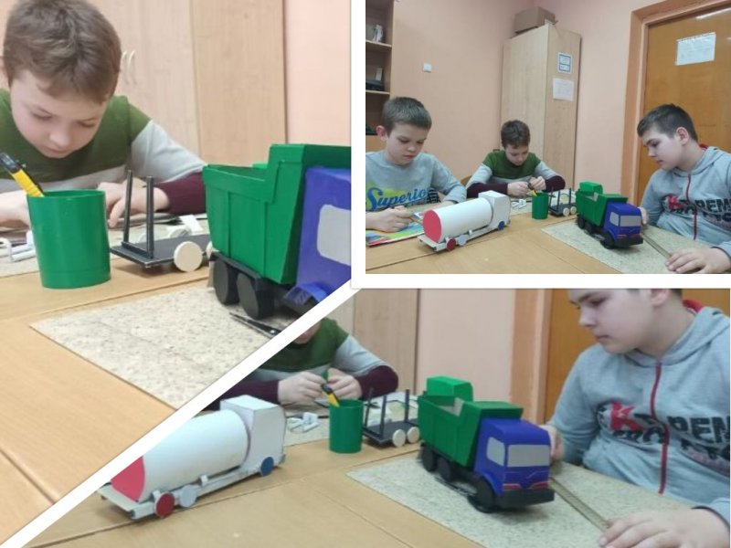 Ребята из объединения Начальное техническое моделирование занимаются своим любимым делом – моделированием авторских моделей транспортной техники. Сейчас мы работаем над проектом «Проектирование грузового автомобиля».