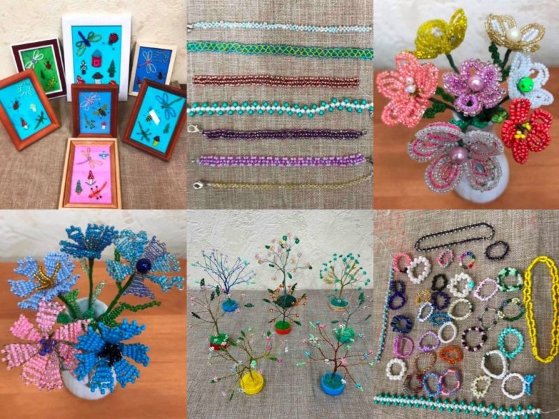 успехи в бисерном рукоделии появляются на мини- выставках в объединении «Бисероплетение». Мы предлагаем вам полюбоваться нашими первыми бисерными изделиями. Учащиеся по программе «Бусинка», 1 года обучения, выполнили работы на проволочной основе - панно «Летняя поляна» и «Цветочные деревья», а учащиеся по программе «Бисероплетение: рождение чуда», 1 года обучения, представили - цветы на проволоке и бисерные браслеты, кольца в различных техниках плетения на нитках. Это только начало! Будем осваивать это рукоделие и добиваться высоких результатов!
