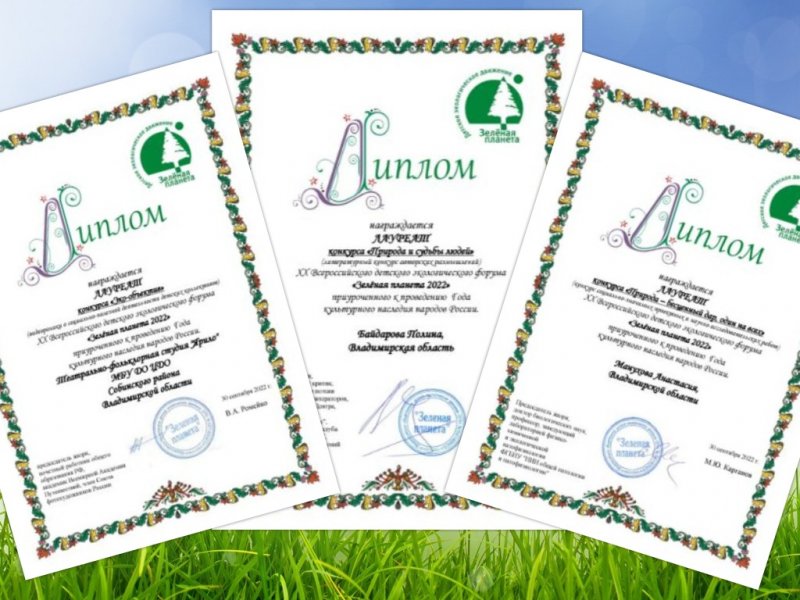 2022 год был объявлен Президентом Годом культурного наследия и нематериальных культурных ценностей народов России. Наши учащиеся приняли участие в Международном экологическом форуме «Зеленая планета», представив свои творческие работы. И вот долгожданный результат Всероссийского этапа: три победителя!!!