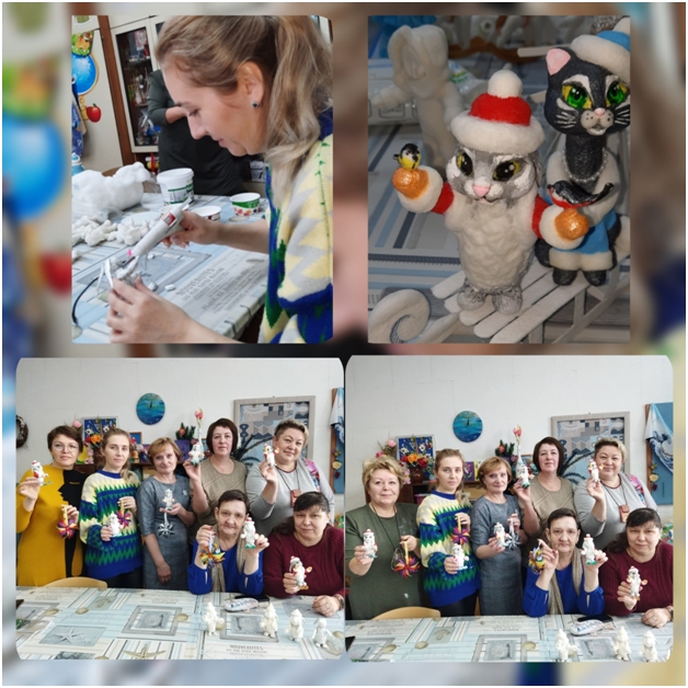 Участники клуба, педагоги дополнительного образования со всей Владимирской области познакомились с творчеством мастеров Латиной Надежды Александровны, лицей-интернат №1 г. Владимира. Она представила Мастер класс по обучению техники изготовления из ваты новогоднего сувенира «Кролик — символ Нового года». И Овсовой Ольги Александровны, ГКОУ ВО «СКОШИ» г. Петушки, она познакомила нас с техникой «шитье» и изготовлением «Новогодней игрушки».