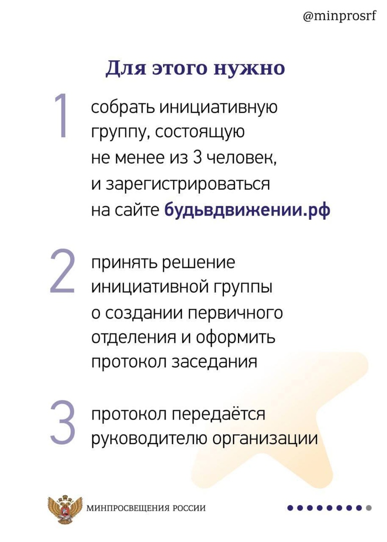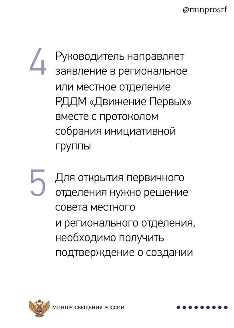 О том, как вступить в «Движение Первых» и как открыть отделение, читайте в нашей инфографике