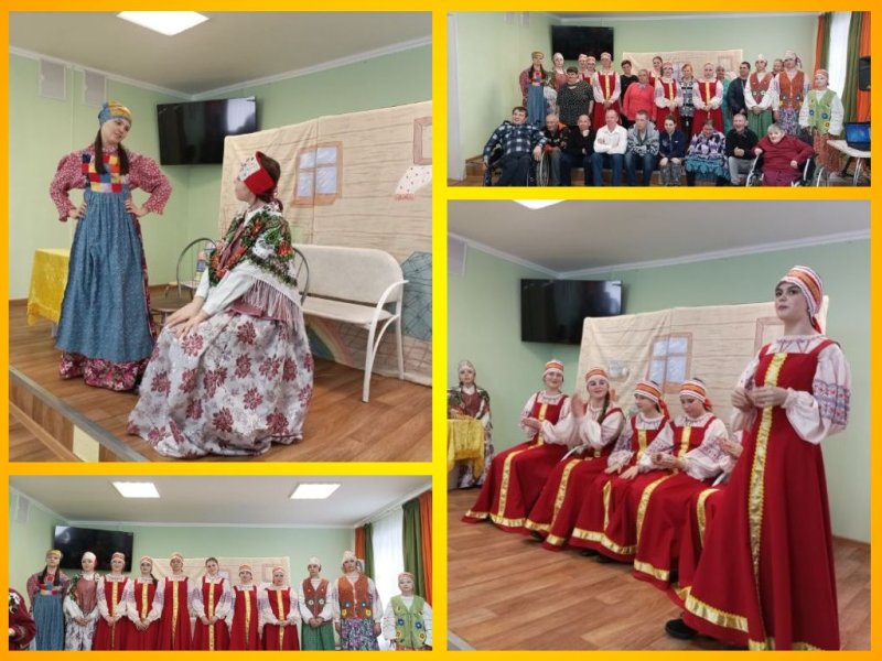 4 апреля 2023 года театрально - фольклорная студия "Ярило" в очередной раз посетила Копнинский ПНИ. В рамках волонтерской деятельности, девочки из объединений "Магия театра и "Горница" представили фольклорный спектакль "Пришли Святки - придут и сваты" для обеспечиваемых и сотрудников ПНИ. Для создания данного спектакля были использованы этнографические материалы Владимирской и близлежащих губерний. Все костюмы, атрибуты и декорации девочки изготовили сами на занятиях студии. Были разучены обрядовые песни и свадебные плачи. спектакль получился интересным, красочным и эмоциональным. Зрители наградили актеров бурными аплодисментами и с нетерпением ждут наших новых спектаклей.