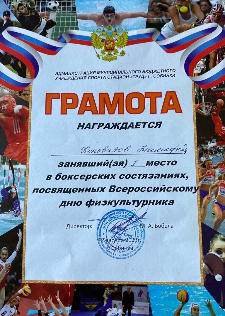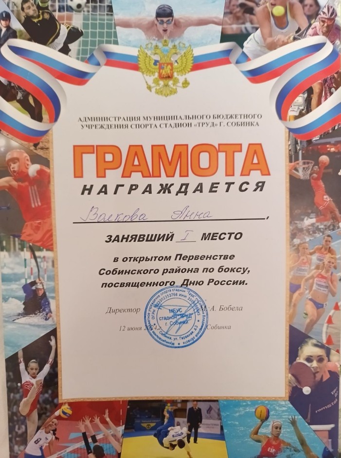 Открытое первенство Собинского района по боксу, посвященное Дню России - 1 место.