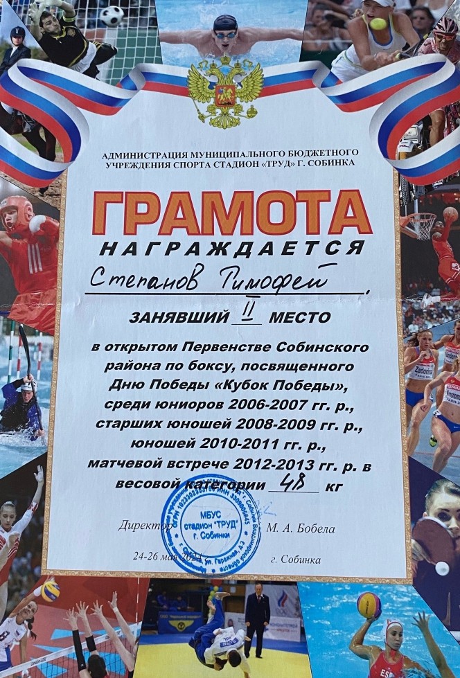 Открытое первенство Собинского района по боксу, посвященное Дню Победы - 2 место.
