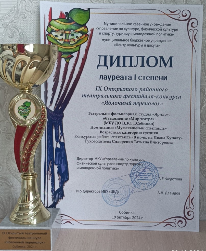 Открытый районный театральный фестиваль конкурс "Яблочный переполох" - 1,2 место.